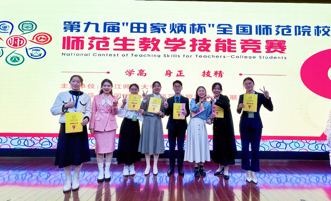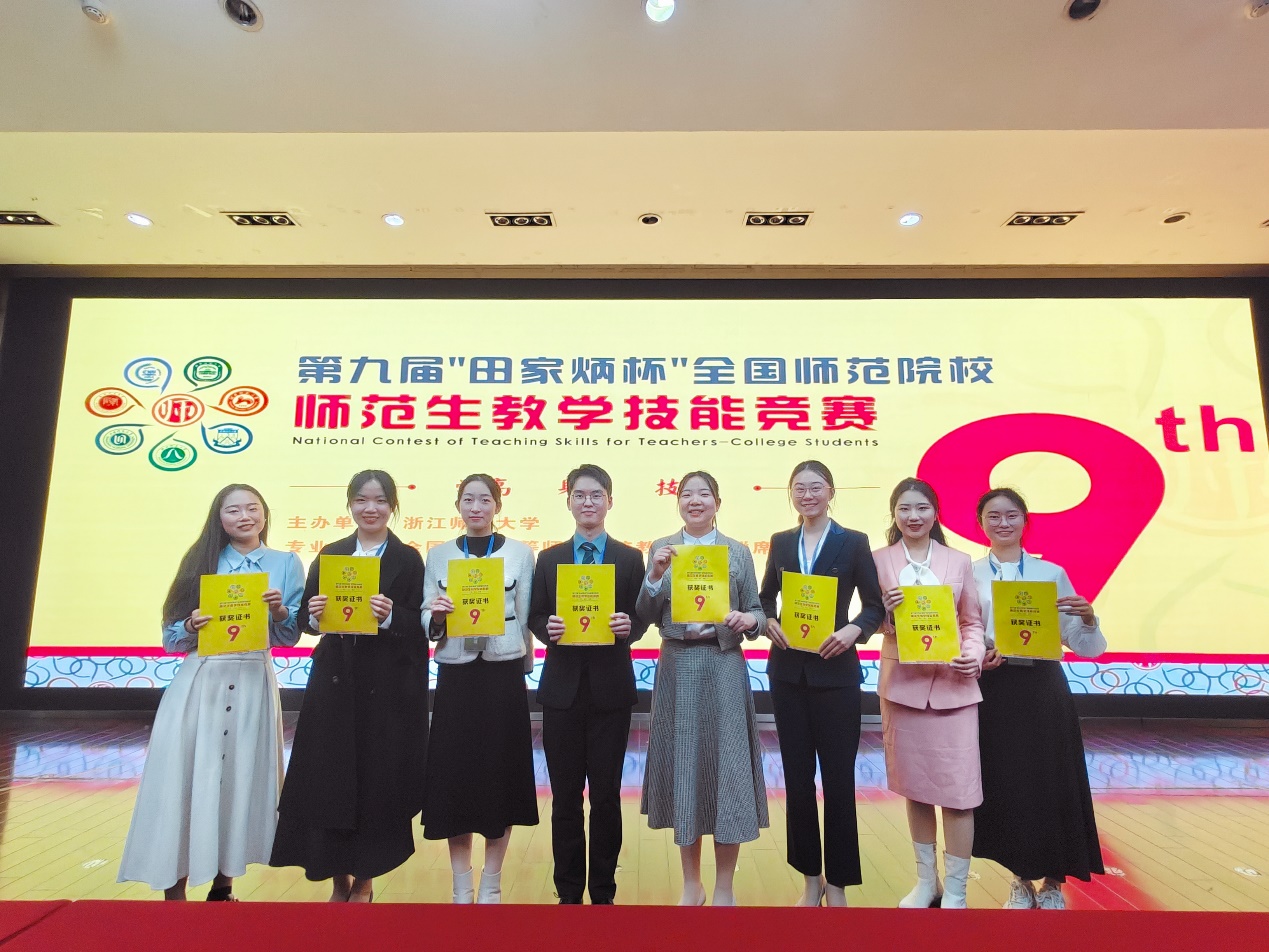 2023年12月30日-31日,第九届“田家炳杯”全国师范院校师范生教学技能竞赛决赛在浙江师范大学落下帷幕。我校荣获一等奖6项,二等奖2项,三等奖2项,获奖总人数与一等奖数量创历史新高,跃居全国参赛院校第二名,实现全国师范院校师范生教学技能竞赛获奖层次和数量的新突破。