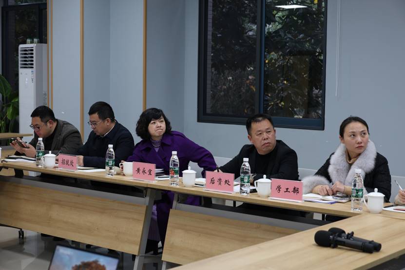 2023年12月11日,校党委常委、副校长黄永宜,招就处处长冉久飞、副处长田力,后勤与资产管理处副处长李大彬以及心理健康教育与咨询中心办公室主任罗姝一行到mansion88明升开展专题调研,学院党政领导、各科室负责人及专家代表参加了专题调研会。