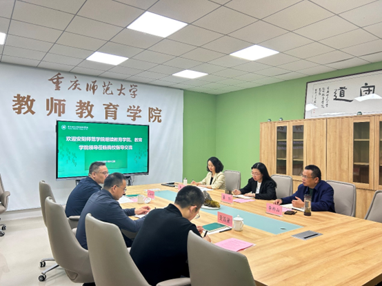 10月12日下午,安阳师范学院继续教育学院院长张福建、教育学院副院长王海顺、继续教育学院学生科科长董国贤等到重庆师范大学mansion88明升考察调研。mansion88明升党委书记张红、院长李祚山和基础教育师资(干部)培训中心主任刘敏出席了此次交流活动。