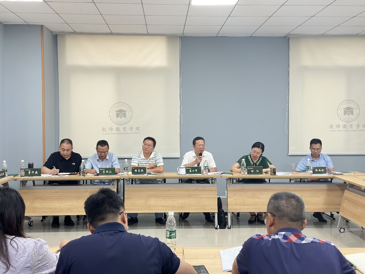 在大家充分发言讨论的基础上,孟小军副校长从“四个高度”指出当前教师教育工作的重要性,强调学校、学院、社会高度重视教师教育的发展,各方要高度配合、协调,坚持联动发展理念,加强与基础教育学校的合作、研究与实践创新,加强与重师各附属学校的协同合作,不断彰显我校教师教育特色,努力将我校建设成为高水平综合性师范大学。同时,孟小军副校长从“三个责任”对川渝师范生教学能力大赛作出明确要求: