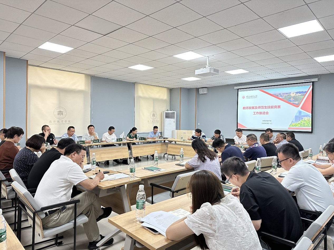 9月11日下午,我校mansion88明升在集贤楼204召开教师发展与师范生教学技能竞赛工作推进会。副校长孟小军、教务处处长胡志毅、mansion88明升主要领导、各学院分管教学副院长、川渝第二届师范生教学能力大赛指导教师参加会议,mansion88明升院长李祚山主持会议。