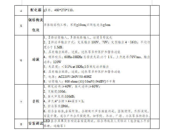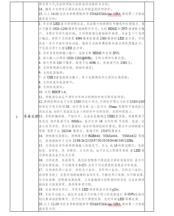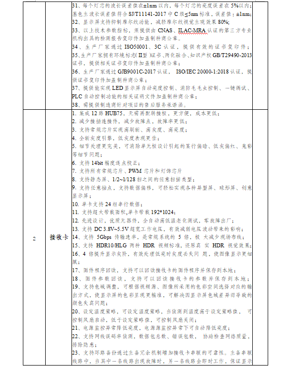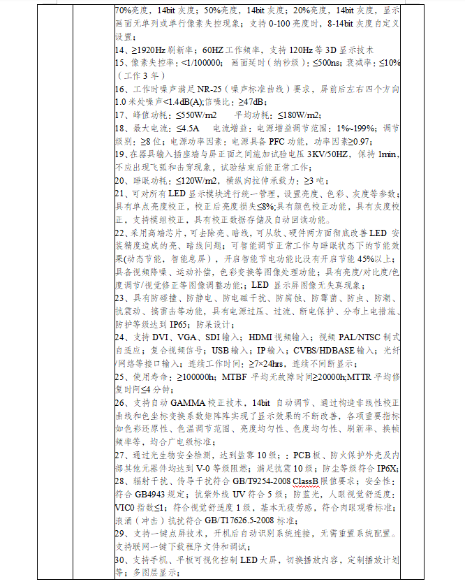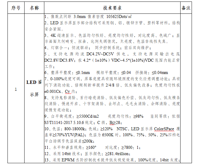 本项目需要LED户外P3显示屏,长6.5米,高1.38米,屏幕面积8.970平方米(含边框),屏体面积8.192平方米(中标后以实际测量面积为准,但不小于8.192平方米)。