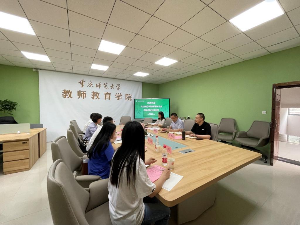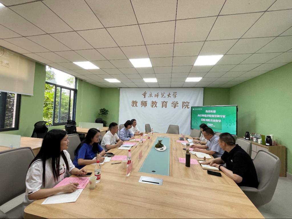 李祚山院长对蒋乾副主任一行的到来表示热烈欢迎,并介绍了学院文化建设、学科发展、实习实训中心建设等情况。学院自成立一年多来,在重庆师范大学校领导的关心和指导下,取得了一定的成绩,进一步明确了工作职责和发展方向,学院在促进高校教师发展、师范生教学技能提升、服务基础教育师资(干部)培训等方向发挥了积极的作用。随后双方结合师范生实习实训工作,进行了深入交流与经验分享,对双方进一步加强交流与合作提出了期望。