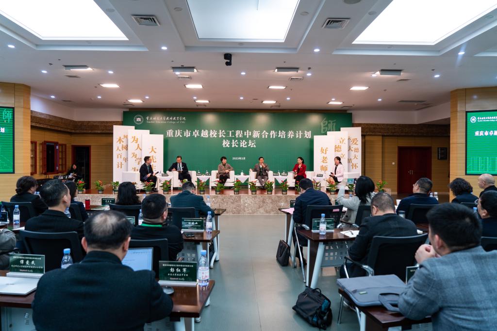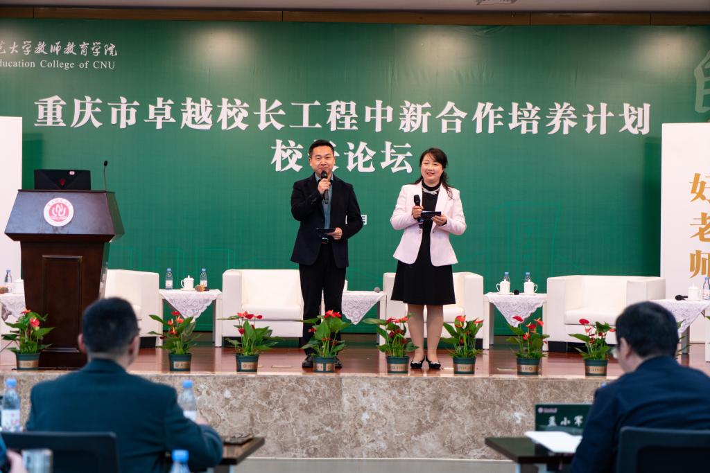 早春的重师校园,草长莺飞,生机盎然。为了进一步总结提炼、交流展现卓越校长工程中新合作培养计划第五期学员的学习成果,研讨师范生人才培养与基础教育高质量发展,3月27日下午, 2023年重庆市卓越校长工程中新合作培养计划校长论坛在重庆师范大学大学城校区博雅楼504举行。重庆师范大学党委常委、副校长孟小军,重庆师范大学mansion88明升党委书记张红、院长李祚山,中新班第五期、第六期全体学员,学校部分学科课程与教学论教师、部分附属学校校长参加了本次论坛。论坛由江北区培新小学校校长朱长刚、渝中区马家堡小学校书记万莉莉主持。