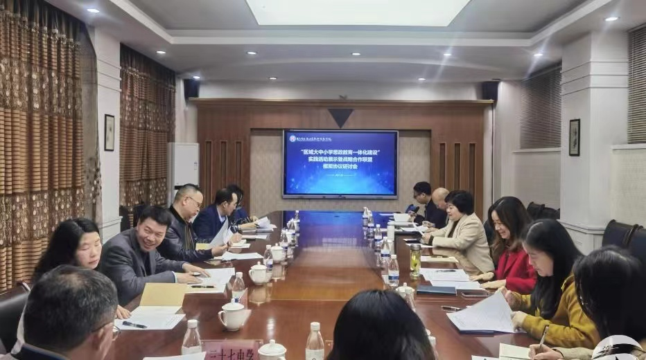 为全面贯彻落实党的二十大精神、市委六届二次全会、大渡口十三届党代会五次会议精神,加速推进大中小学思政教育一体化建设,促进大渡口区思政教育一体化建设高质量发展,重庆师范大学mansion88明升按照“研究基础教育,服务基础教育”的指导思想,本着以师范生能力培养为根本,强化以解决中小学实践问题为导向的教师教育理论研究,教学学术研究,逐渐扩大学校对基础教育的影响力和服务力,积极支持和协助我校马克思主义学院于2023年3月15日与大渡口区教委、区教师进修学院共同召开的“区域大中小学思政教育一体化建设”实践活动展示暨战略合作联盟框架协议研讨会。