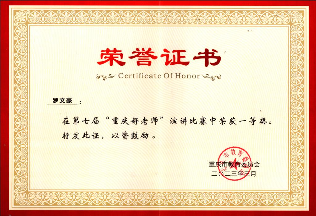 2023年3月12日,第七届“重庆好老师”演讲比赛决赛圆满落幕。经过激励角逐,我校初等教育学院罗文豪同学荣获大赛一等奖,教育科学学院李华锦同学荣获三等奖。