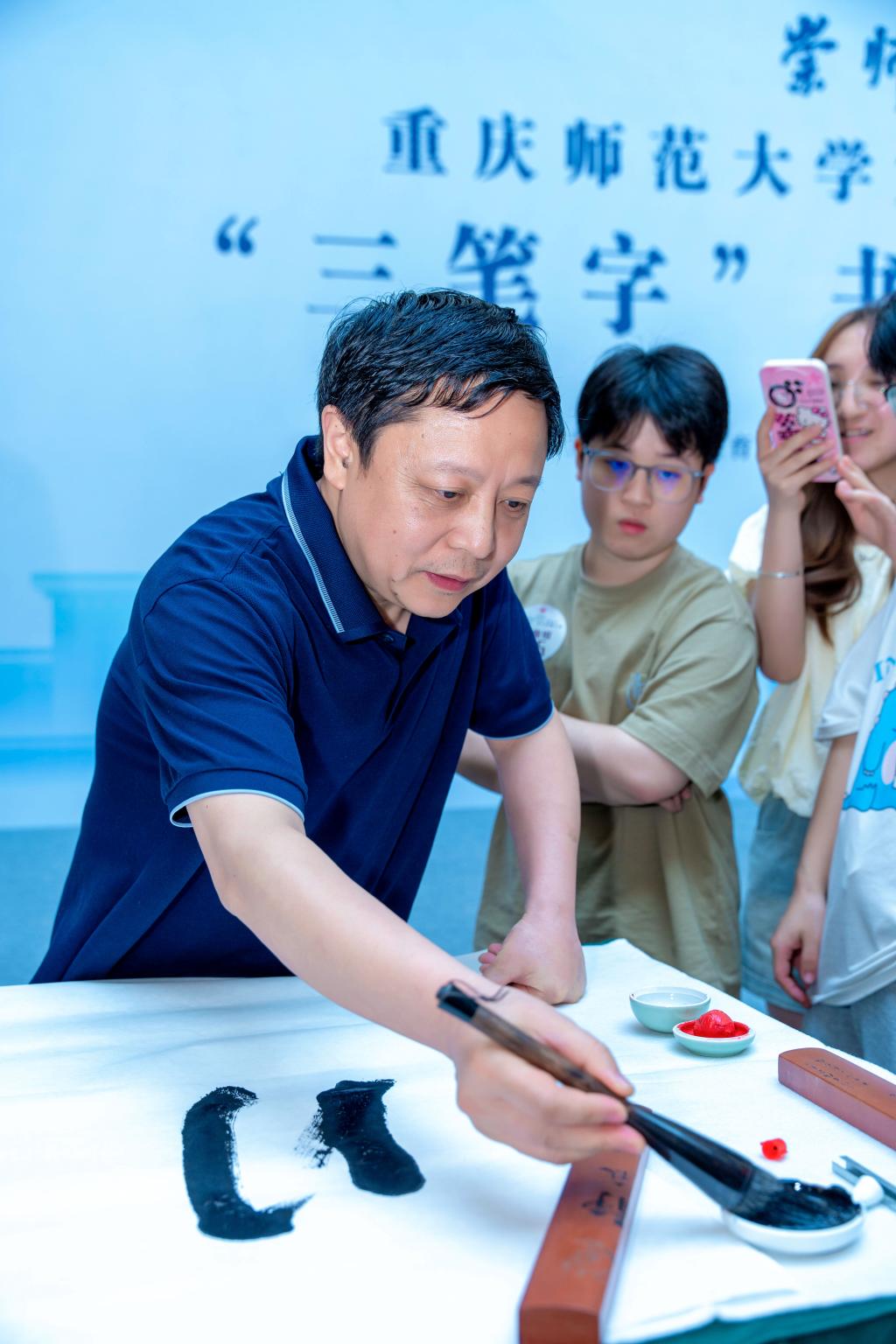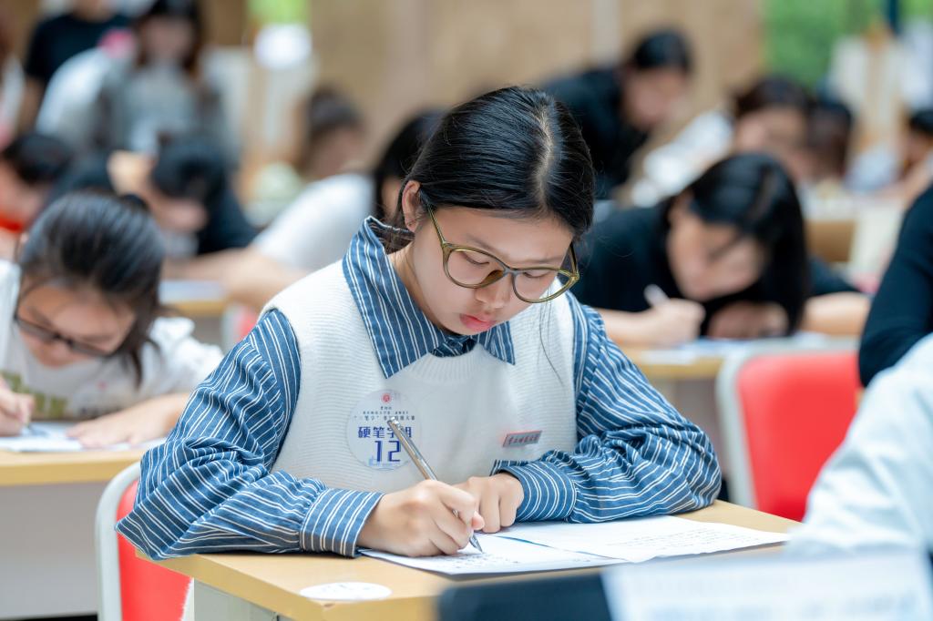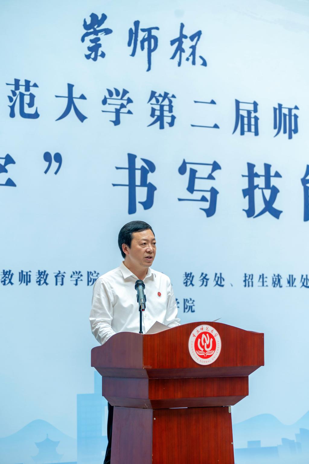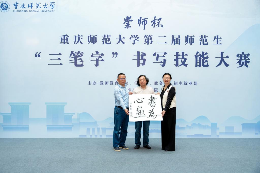 汉字之光,照亮中华文明;汉字书写,厚植育人初心。2024年4月18日,由mansion88明升、学工部、教务处、招生就业处主办,美术学院承办的重庆师范大学“ 崇师杯”第二届师范生“三笔字”书写技能大赛决赛在博雅楼圆满举行。校党委常委、副校长孟小军,mansion88明升、学工部、教务处、招生就业处、国内合作与联络中心主要负责人以及相关学院负责人出席并观摩大赛。大赛还特别邀请到重师附小、附二小、附中的学生代表同台竞技。
