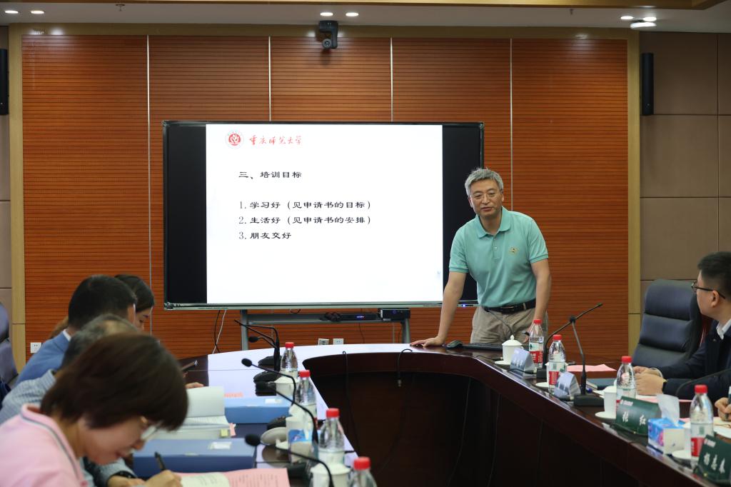 为进一步强化国培项目过程管理,优化实施方案,切实提高培训质量,5月9日上午,以重庆市铜梁区教师进修学校校长李奕奕为组长,重庆市江北区教师进修学院院长助理曾维义、重庆市沙坪坝区教师进修学院培训部主任王霜和重庆市中小学教师发展中心国培市培项目办高雪为成员的视导专家组莅临重庆师范大学,对我校承担的三个国培项目进行了全面视导。学校统筹部门mansion88明升党委书记张红及三个项目组的全体成员参加了视导工作会。