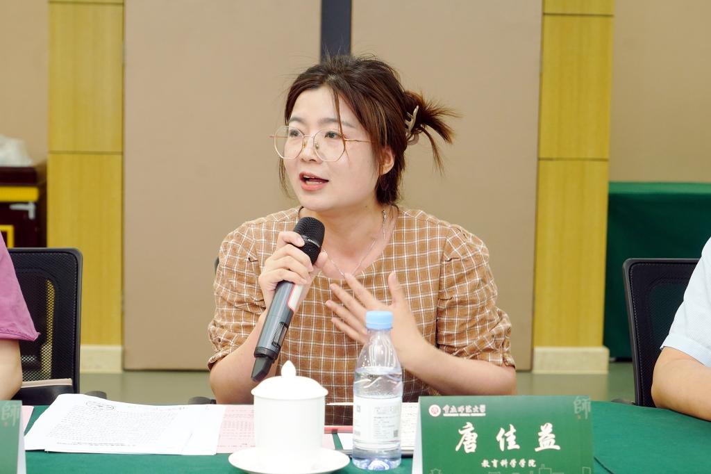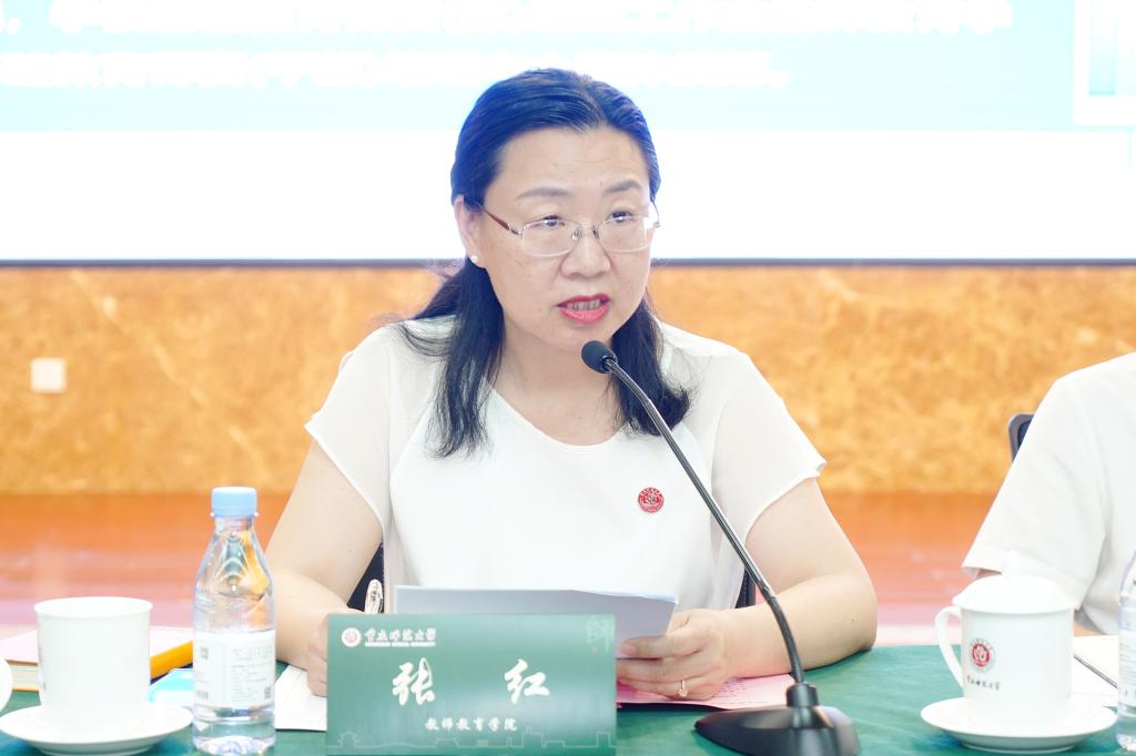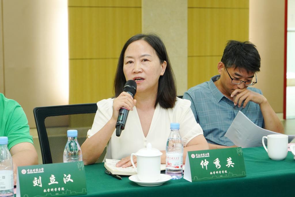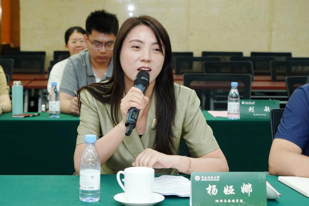 地理与旅游学院的杨娅娜老师则作为项目首席专家代表,以专业视角从系统研究、精准培训及高校与基础教育协同发展的角度阐述了她的观点。她强调,要打造精品培训项目,满足不同层次、不同领域教师的需求。高校应主动与基础教育接轨,利用自身资源与优势服务基础教育,同时也应充分利用基础教育资源反哺高校的人才培养与学科建设。她建议从人才培养方案修订、微论坛组织、“三习”安排等多个方面入手,深化合作,实现共创共赢。