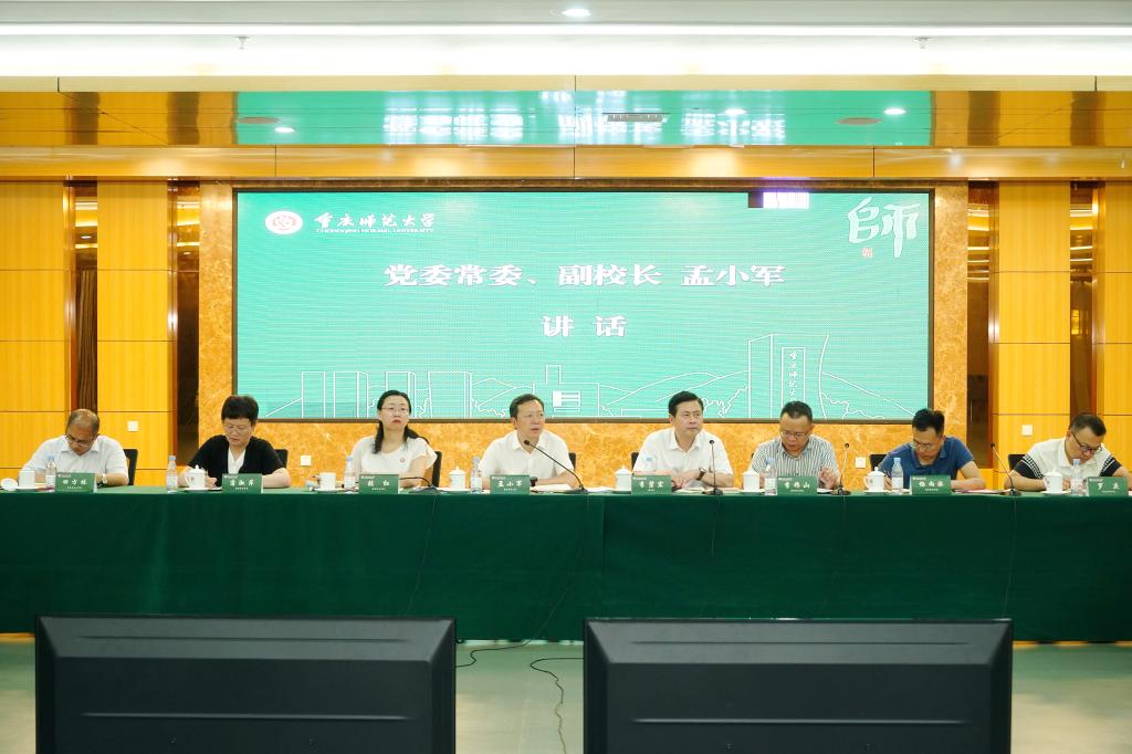 7月3日下午2:30,学校2024年基础教育师资(干部)培训(以下简称“教师培训”)工作会在大学城校区博雅楼503会议室召开。本次会议旨在深入探讨如何进一步做实高质量教师培训,突显学校教师教育特色发展。会议由重庆师范大学mansion88明升院长李祚山主持,校党委常委、副校长孟小军,财务处处长李碧宏,mansion88明升全体党政班子以及各二级学院培训分管领导、各学科(领域)培训项目负责人、首席专家及成员等近50人参加了会议。