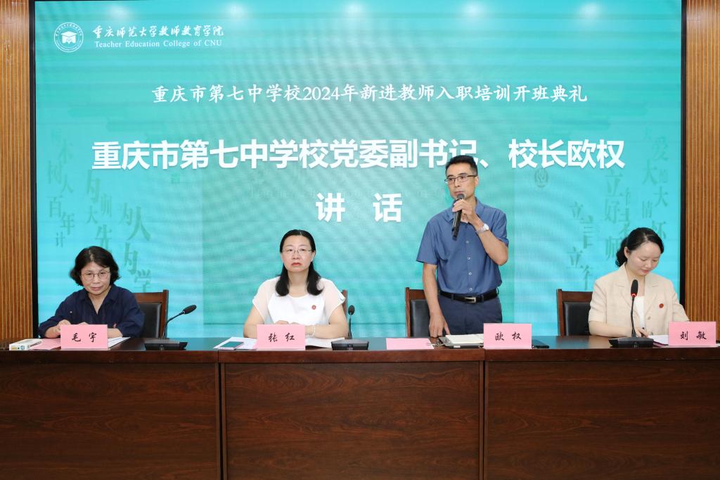 7月4日上午9时,重庆师范大学送教上门,送培到校,在重庆市第七中学开启了一场意义深远的新进教师入职培训开班仪式。此次培训由重庆师范大学mansion88明升整合本校和七中校本优质资源,为重庆七中新进教师的入职培训量身打造培训方案,标志着双方在教师教育协同培训领域探索全新合作,共同打造促进青年教师专业成长的新模式。