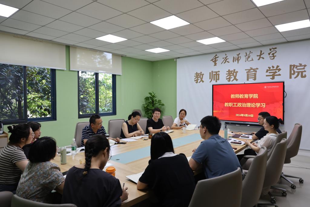 党委书记张红传达了重庆师范大学学习贯彻党的二十届三中全会精神专题读书班暨2024年第七次党委理论学习中心组(扩大)学习会的精神。张红指出党的二十届三中全会是在以中国式现代化全面推进强国建设、民族复兴伟业的关键时期召开的一次十分重要的会议。全会取得的重要成果、作出的重大部署,对于动员全党全军全国各族人民团结奋斗、锐意进取,以进一步全面深化改革开辟中国式现代化广阔前景具有重大意义。学院印发了相关学习材料,全体教职工要静下心学,党员同志至少通读二遍,科级以上干部至少通读三遍;要切实围绕学院中心工作和重点工作,以服务全校师生为导向,坚持守正创新,在解决问题中扎实推进教师教育工作,切实推动学院高质量发展。张红还要求要抓好重点领域风险防范,守牢意识形态阵地,加强消防安全宣传教育和隐患排查整治,把安全发展理念融入到办学治校、教书育人全过程。