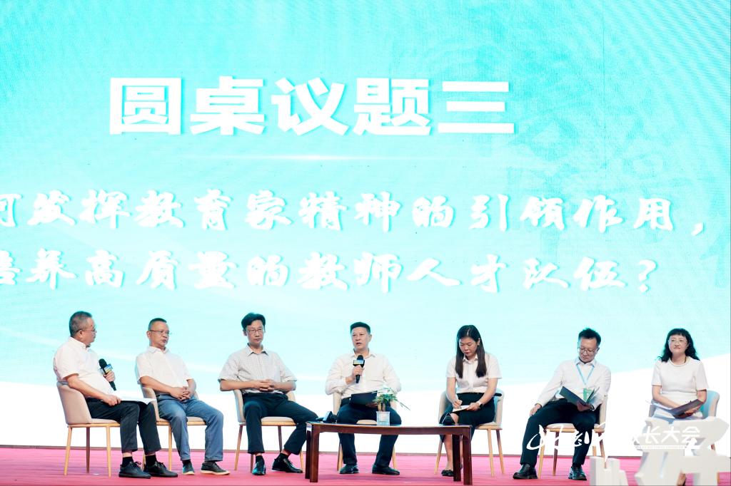 在大会圆桌论坛环节,李祚山院长与其他专家一道以“未来好老师”的成长与发展为主题进行对话,聚焦“未来好老师”的培养,共商、共研、共享“未来好老师”的成长之路。李祚山院长从师范教育的角度出发,指出在高质量教师人才队伍建设的过程中,要重视师范生教师职业基本能力的培养。他分别从国家层面、学校层面、师范生自身层面提出了加强师德践行能力、教学实践能力、综合育人能力、自主发展能力的策略,同时强调要重视教育资源共享与协同发展,构建主体多元、开放交流、互动发展的师范教育机制,抓住教师教育数字化转型契机,赋能新时代教师成长,促进区域基础教育均衡发展。