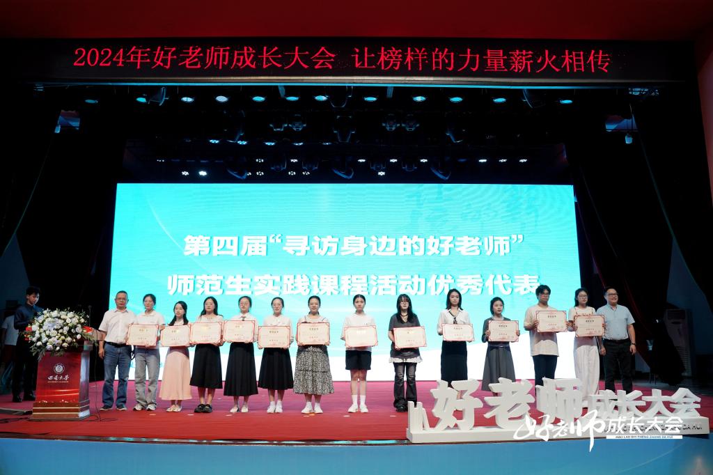 9月20日, 2024年好老师成长大会暨第五届“寻找中国好老师”公益行动与“寻访身边的好老师”师范生实践活动总结大会在西南大学举办,mansion88明升院长李祚山受邀出席大会并担任圆桌论坛嘉宾,我校15名师范生提交的实践课程活动作品经评审专家委员会审定被评为优秀作品,获奖数量排名全市第二。