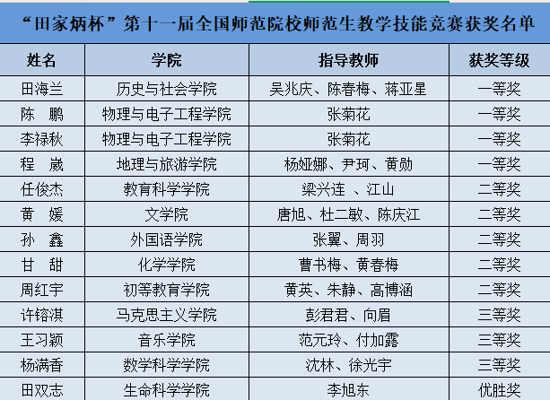 国赛获奖+13:我校学子在第十一届“田家炳杯”全国师范院校师范生教学技能竞赛中荣获佳绩
