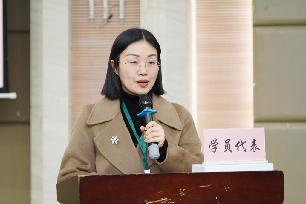 江津区享堂小学副书记廖晓敏作为学员代表发言,她表示此次培训对于提升小学校级干部的教育管理水平具有重要意义,将认真聆听专家讲座,积极参与交流研讨,努力将所学知识运用到实际工作中去,为推动学校发展贡献力量。