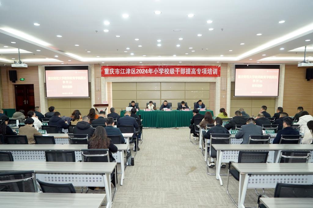 12月9日,重庆市江津区教育委员会和江津区教师进修学院主办,重庆师范大学mansion88明升承办,重庆市江津区2024年小学校级干部提高专项培训开班典礼在三春湖会议厅举行。江津区委教育工委委员、区教师进修学院党委书记、院长蔡增灏,mansion88明升院长李祚山出席开班典礼并致辞。