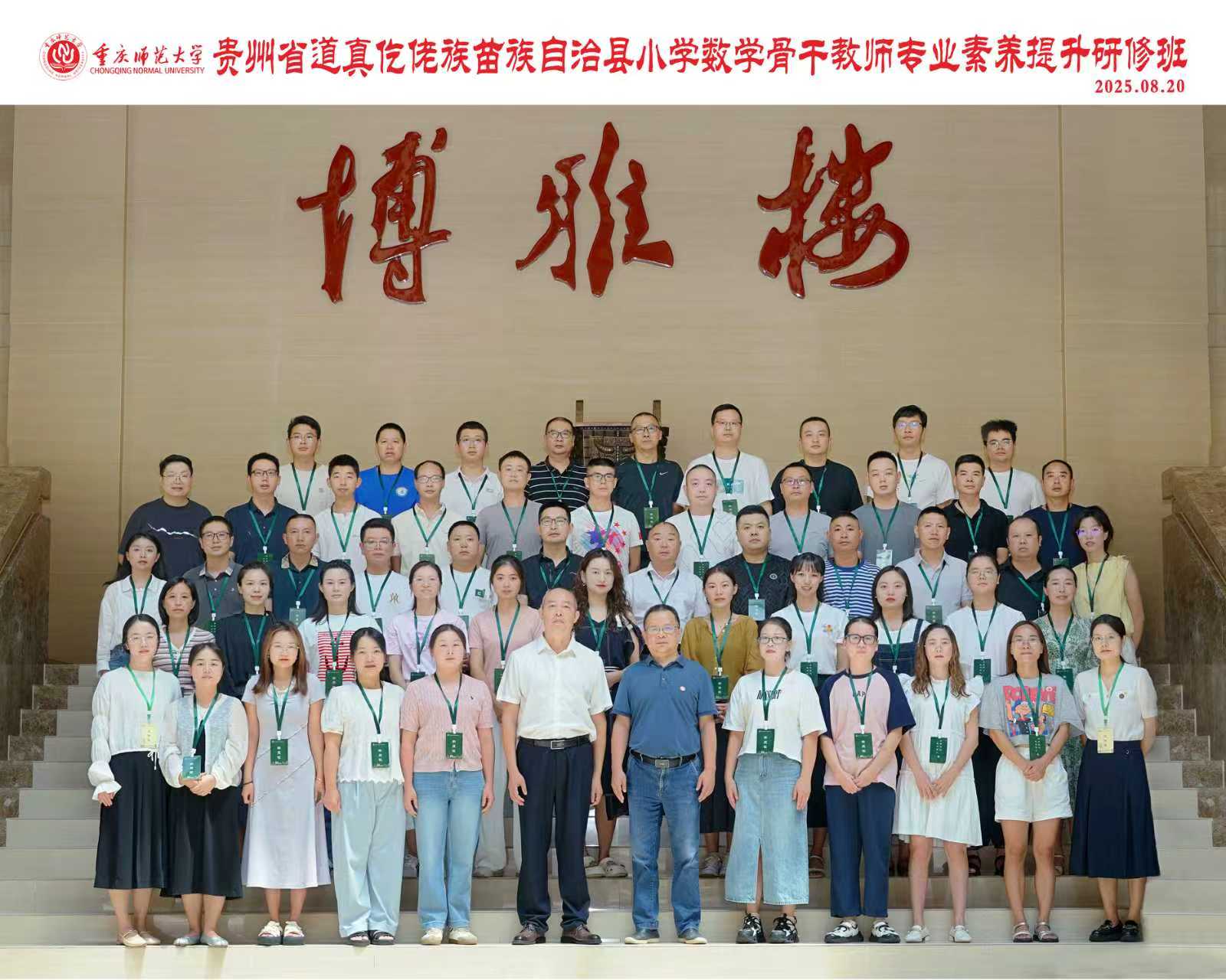 盛夏未央,秋意初显2025 8 20午,贵州省道真仡佬族苗族自治县2025年小学数学骨干教师专业素养提升研修开班仪式在重庆师范大学大学城校区博雅楼举行。贵州省道真仡佬族苗族自治县人民政府督学冷玉强,mansion88明升院长李祚山出席开班典礼