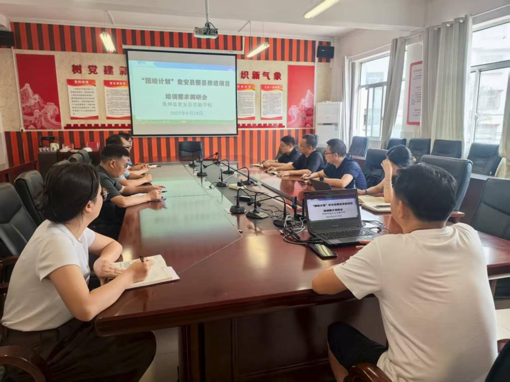 整县推进项目首席专家黎万江主持需求调研座谈会。两地校(园)长、骨干教师代表围绕新课标落实、校本研修实效等核心议题展开深入研讨,就培训对象分层、内容模块设置等提出建设性意见。调研组实地考察了瓮安县和遵义市汇川区6所样本校,通过校园观摩、教师访谈、调研问卷等形式,系统收集县域基础教育发展的一线数据,进一步明晰了项目培训需求,以确保培训方案更加精准有效。