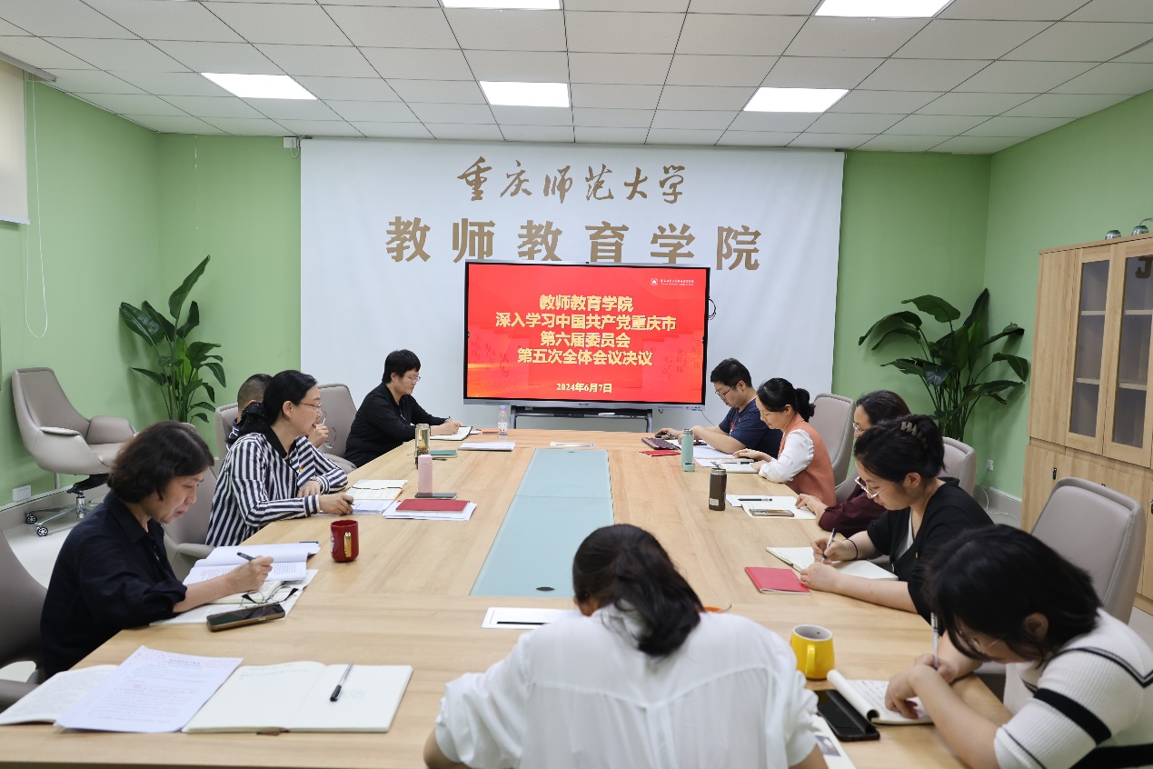 党委书记张红带领全体党员和领导干部首先学习了《中国共产党重庆市第六届委员会第五次全体会议决议》全部内容。张红强调,要全面学习全面领会全面贯彻习近平总书记重要讲话重要指示精神,以感恩之心、爱戴之情、奋斗之志扛起新使命、谱写新篇章。要毫不放松坚持党的领导、加强党的建设,锤炼提升党员干部特别是领导干部政治能力,真抓实干、积极进取、担当作为。扎实开展党纪学习教育,持续修复净化政治生态,持之以恒正风肃纪反腐,以高质量党建确保习近平总书记殷殷嘱托一贯到底。在坚决拥护“两个确立”、坚决做到“两个维护”上思想更加坚定、行动更加自觉,始终同以习近平同志为核心的党中央保持高度一致,矢志不渝忠诚核心、拥戴核心、维护核心、捍卫核心,以实干实绩实效回报习近平总书记和党中央的关怀厚爱。在引领西部服务大局上展现更大担当、作出更大贡献,加快建设教育强国,办好人民满意的教育。