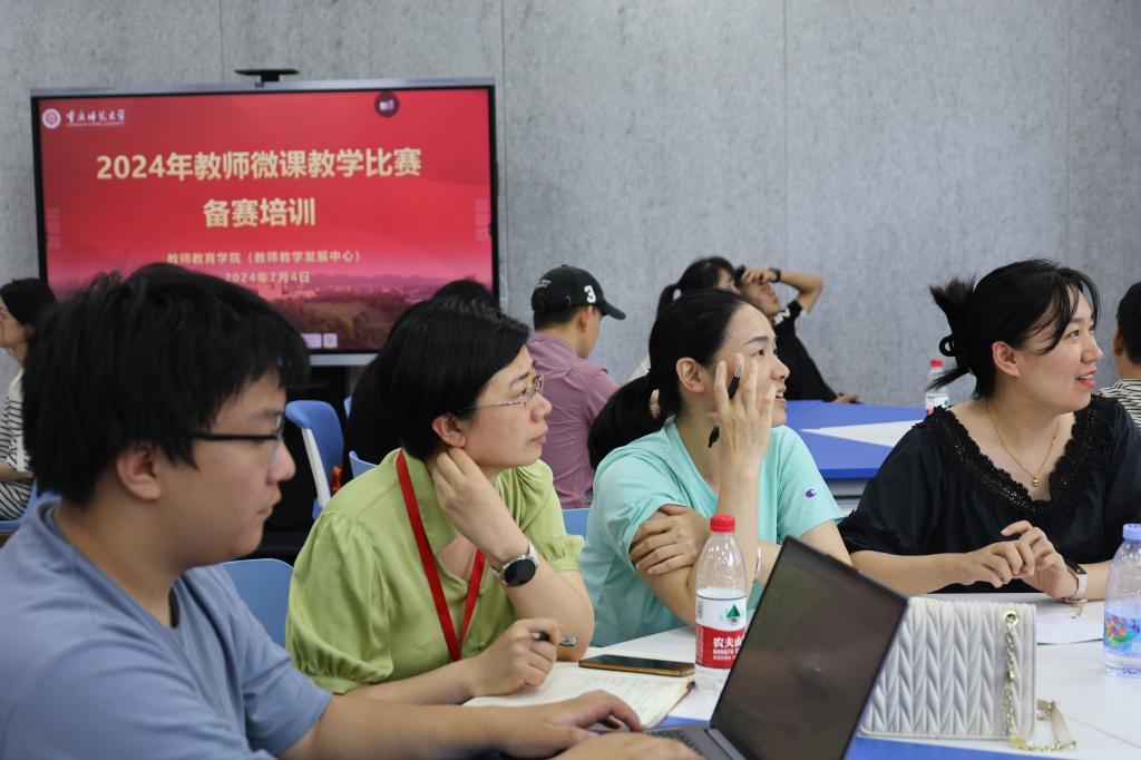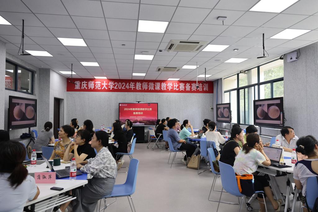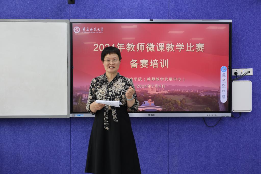为提升我校教师的数字化教学能力,助力教师备战2024年微课教学比赛,7月4日下午,重庆师范大学2024年教师微课教学比赛备赛培训在弘德楼14201室成功举行。校内各教学单位40余名教师踊跃参加。mansion88明升副院长蒲淑萍主持培训。