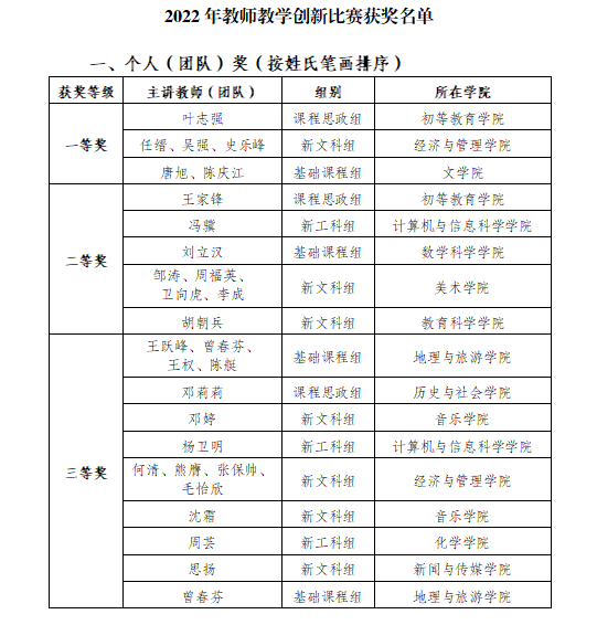 附件:1. 2022年教师教学创新比赛获奖名单