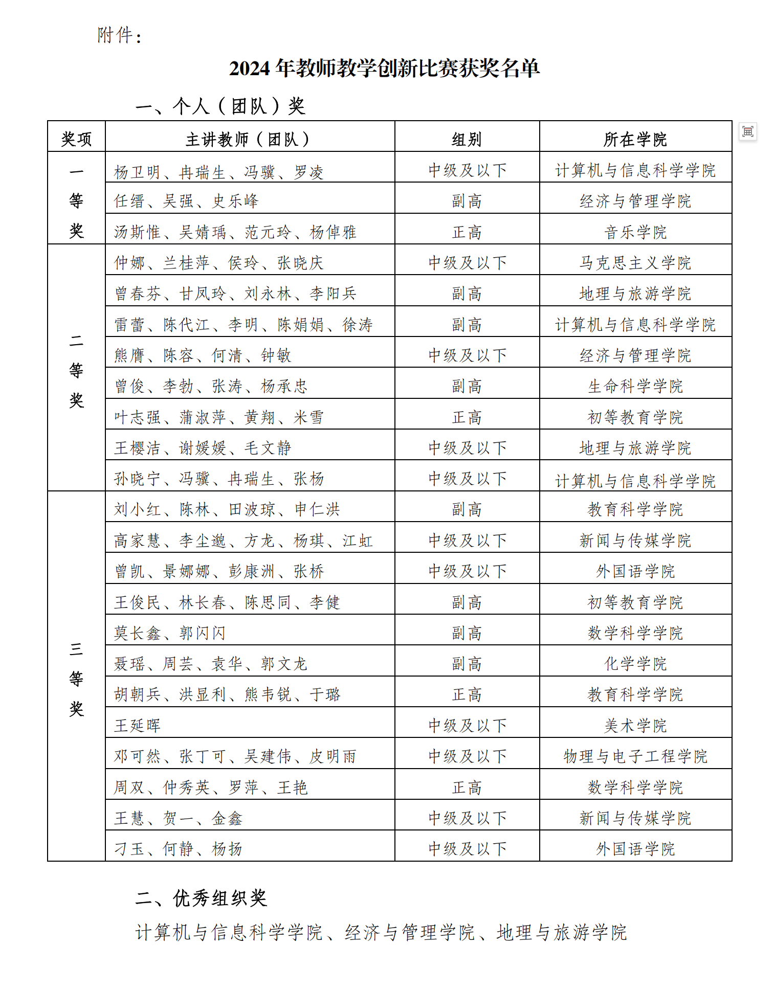 关于公布“师贤杯”2024年教师教学创新比赛获奖名单的通知